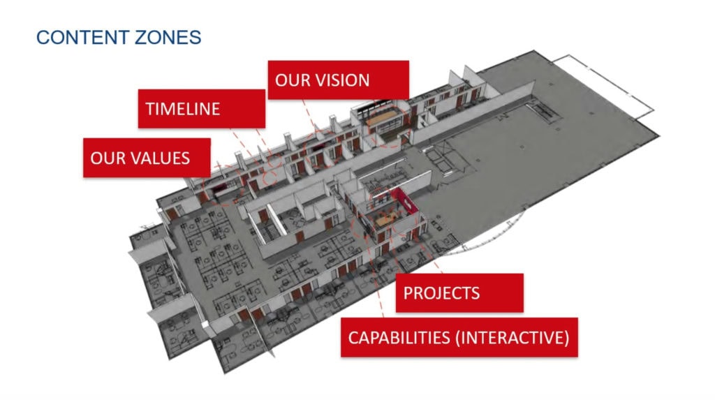 - First, through instilling corporate mission, value and strategy via graphic and architectural design that aligns employees with their employers